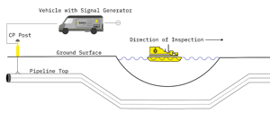 • CMI uses a self-applied AC, the pipeline operation—including the CP system—is not affected by the inspection. It also enables the inspection of influenced pipelines from stray currents.