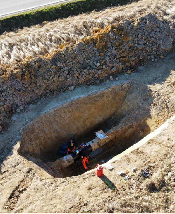 FIG. 12. The excavation site of the coating defect location with indicated active corrosion.