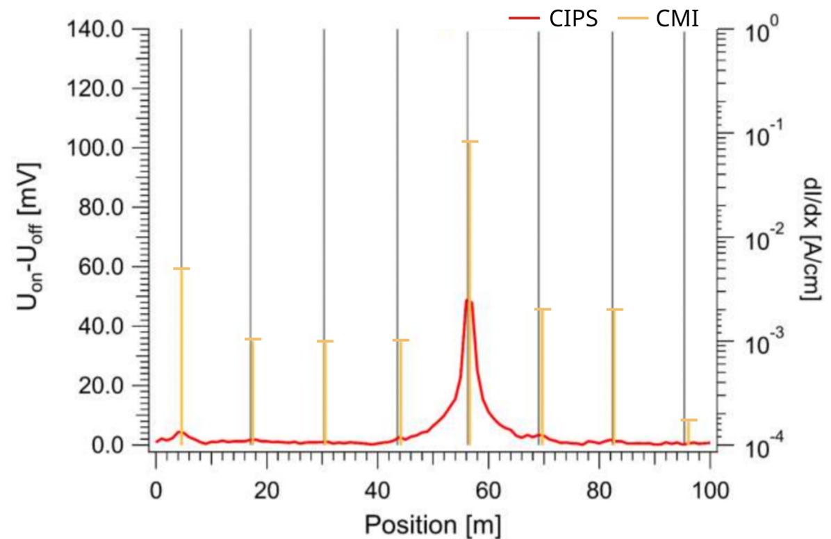 For heavily AC-influenced pipelines, shutting down or interfering with the CP system is not an option, so the CIPS cannot be employed. In addition to the higher defect localization sensitivity, using an AC source allows the CMI assessment to be conducted without interfering with regular operations. No downtime is required, and the CP system can be operated without any interference, making CMI also an option for heavily influenced pipelines from stray currents.