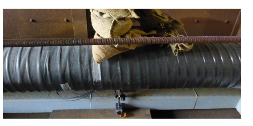 Test were conducted to see how sensitive the system was to displacements of the wall of the pipe. A series of sandbags were applied to the center of a 3 m length of pipe (Figure 7).