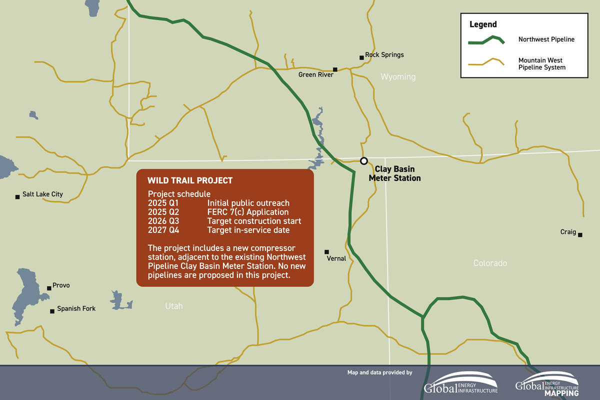 Northwest Pipeline LLC, a wholly owned subsidiary of The Williams Companies Inc., has filed an application with the Federal Energy Regulatory Commission (FERC) seeking authorization to build and operate the Wild Trail Project, a natural gas infrastructure expansion centered around a new compressor station in Daggett County, Utah.