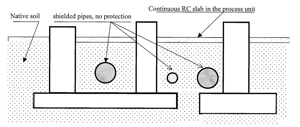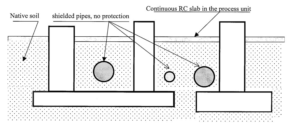 Discussion. Shielding of underground piping network in congested oil and gas plants is one of the major problems when CP is applied for its protection from external corrosion. Process equipment reinforced concrete foundations and electrical plant groundings are an integral part of the plant. Not only is a significant amount of protective current consumed by these elements, but they also restrict the flow of the protective current to the intended structures from the distributed or remote ground bed.