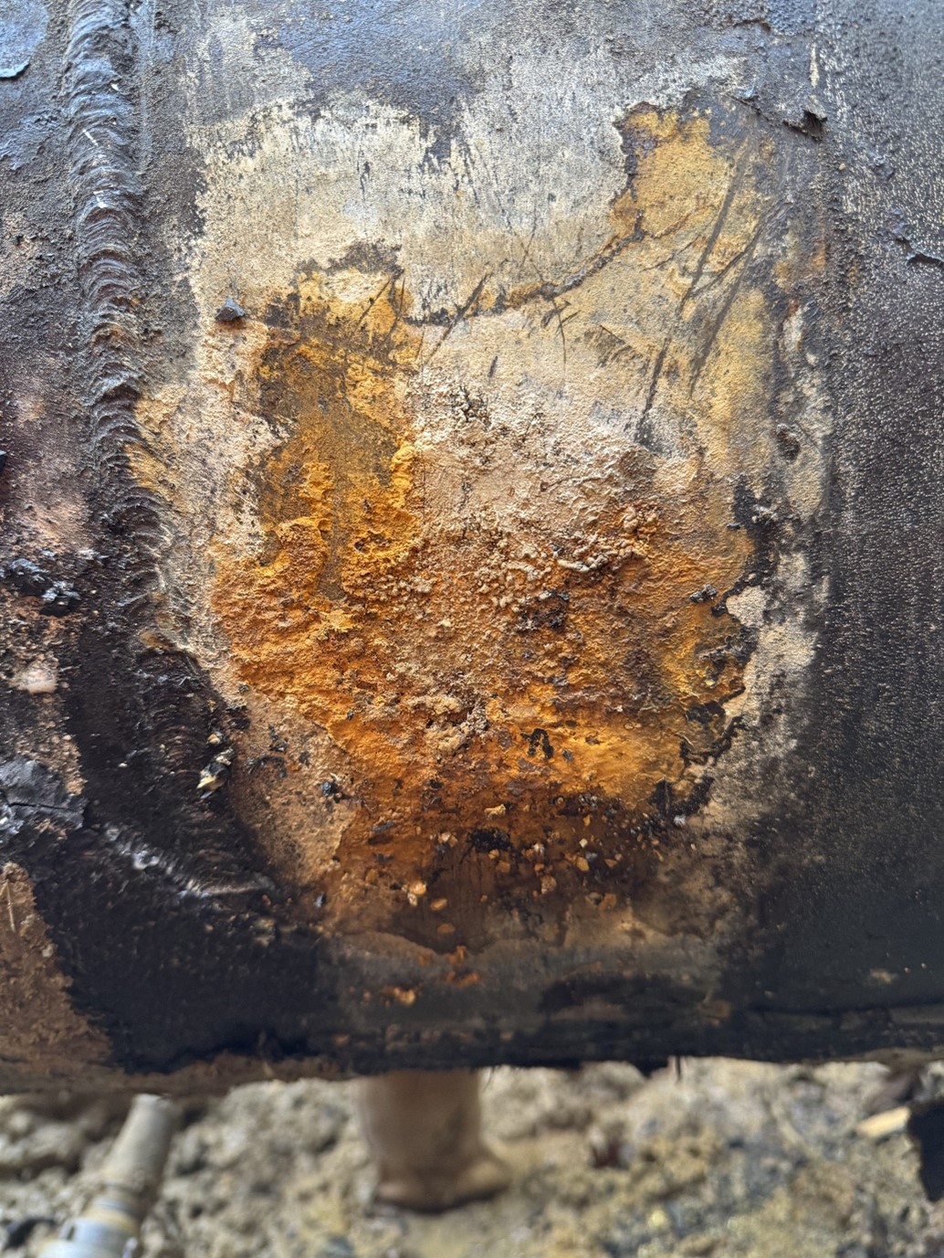 Verification. The excavation of the defect, which was in the populated area as seen in FIG. 12, confirmed its exact position and existence as predicted by CMI. After excavation, active corrosion was identified, confirmed by corrosion byproducts and a slightly acidic pH at the steel surface. Additionally, the exposed and cleaned steel surface exhibited pronounced, localized metal loss consistent with the ILI data, as demonstrated in FIG. 13. These observations confirmed that the CP system was locally ineffective, as concluded from the CMI assessment.