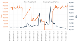 - Review supervisory control and data acquisition (SCADA) trends during a planned or unplanned flow stoppage of 30 minutes or more. If the Btu value rises noticeably when the flow has been stopped for a while, it can indicate heavier hydrocarbons have condensed in the line and are evaporating into gas phase.